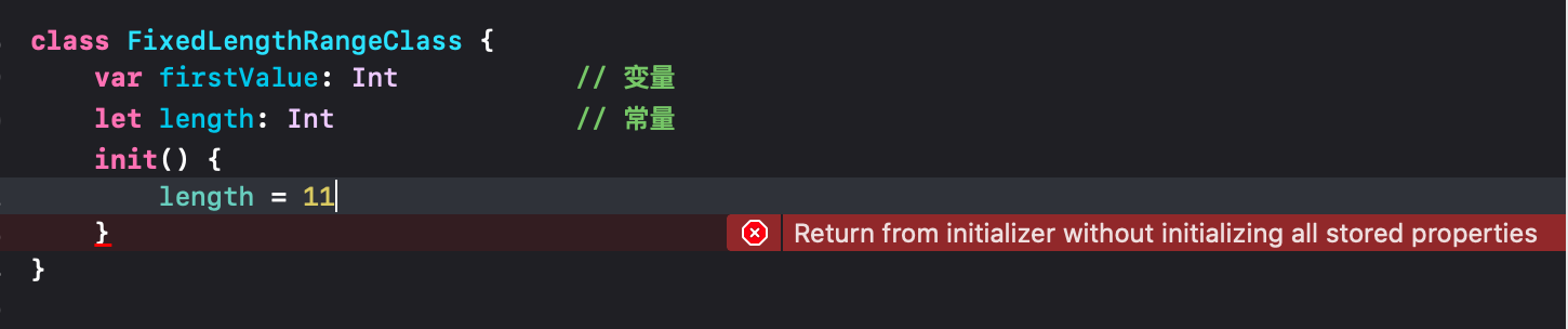 当为常量属性提供初始值时,构造器中不可以再重新赋值。