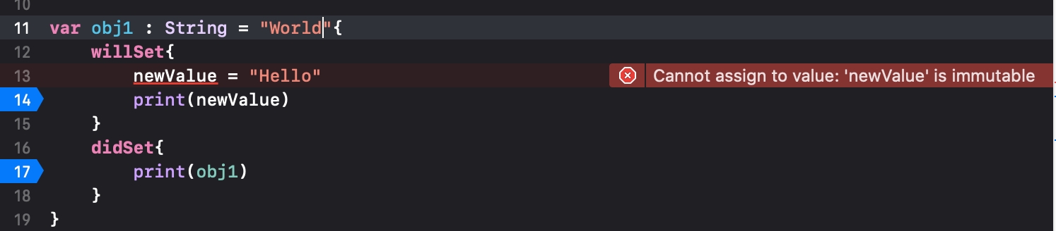 存储属性在定义时提供初始值或者在构造器中初始化不会触发属性观察器