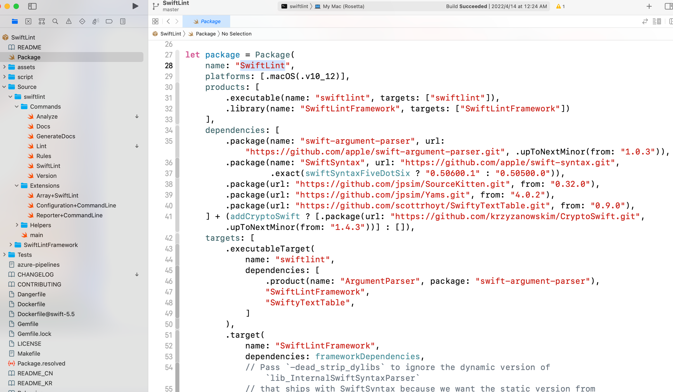 Swiftlint 是统一Swift代码风格的工具,本身就是使用Swift语言编写。Swiftlint 使用 Swift_Package_Manager来组织源代码,可以直接用 Xcode打开。