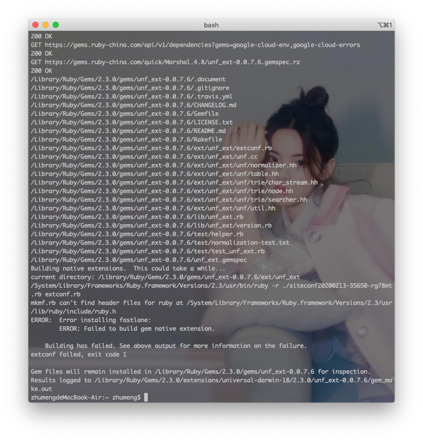 ERROR: Error installing fastlane: ERROR: Failed to build gem native extension.